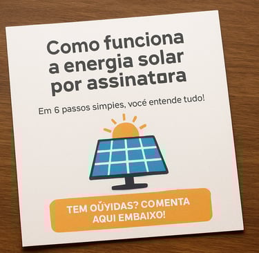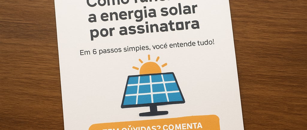 Você já ouviu falar em “energia solar por assinatura” e quer entender como ela funciona na prática? Este guia detalha, em linguagem simples, como é o serviço, para quem serve, quanto dá para economizar, os principais prós e contras, e um passo a passo claro em 6 etapas para você decidir com confiança.
